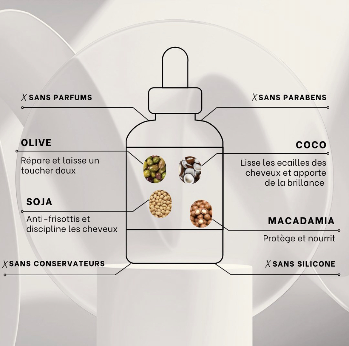Ce sérum à la légèreté incomparable apportera brillance, éclat et nourrira vos cheveux, le tout sans les alourdir ni les graisser. Son absorption parfaite ne vous laissera pas de matières désagréables ni sur les mains, ni sur les cheveux ! Sa pipette compte-gouttes vous permettra une application précise et pratique, et 4 a 8 gouttes suffiront pour raviver votre chevelure. A utiliser sur vos longueurs et pointes sans modération, sur cheveux humides ou secs, avant ou après coiffage, matin, soir, ou même les deux ! Compatible avec tout types de cheveux, les femmes enceintes et allaitantes, ainsi que les enfant de plus de 3 ans.